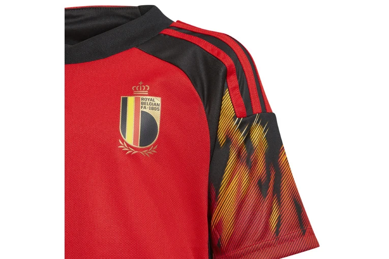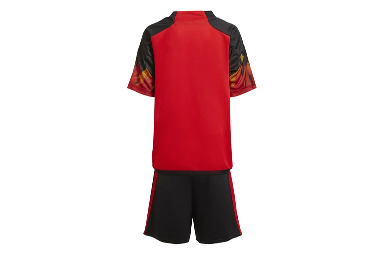 Laat ’t vlammen. Dit adidas tenue is een kleinere versie van wat de Belgische voetballers dragen tijdens een wedstrijd. De vlammende details op de mouwen verwijzen naar de bijnaam van het team, de ‘Rode Duivels’. AEROREADY houdt kids de hele dag droog en comfortabel. Het opgestreken embleem laat zien hoe trots ze zijn op het nationale elftal.
