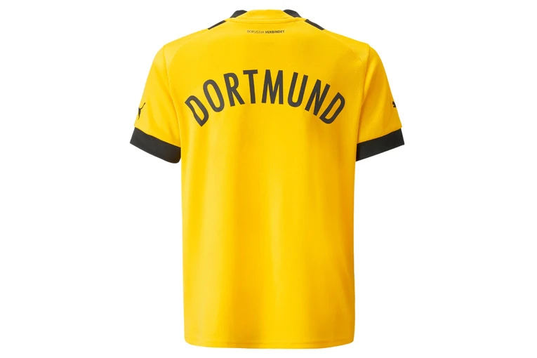 Gemaakt van momenten. Het thuistenue van Borussia Dortmund in 2022/23 roept herinneringen op aan de continentale campagne van 2012/13: van de briljante comeback in de kwartfinale in de blessuretijd tot de vier goals in de heenwedstrijd van de halve finale. De zwarte strepen op de opnieuw ontworpen klassieker zijn verbeterd met tonale graphics geïnspireerd op Zum Wildschütz – het legendarische restaurant Dortmund en de geboorteplaats van BVB. Heja BV!