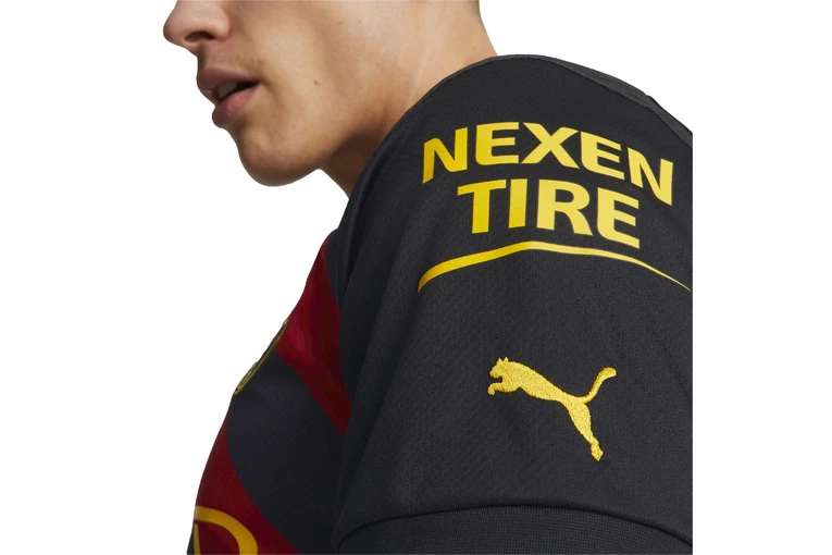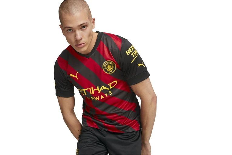 Stad gaf een show. Toen de klas van 1969 de weg op ging, vielen ze op met hun onverschrokken, technisch bedreven voetbal en hun gedurfde en briljante nieuwe uitwedstrijd. Ontworpen door de legendarische Malcolm Allison, bleken verticale strepen van rood en zwart zegevierend te zijn tijdens de FA Cup-finale van 1969 en de finales van de League Cup en de Europacup II van 1970, waarmee ze hun plaats verdienden tussen de favorieten van de fans aller tijden. Het Manchester City FC uittenue 2022/23 ademt nieuwe energie in een klassiek ontwerp. Voor het eerst lopen rode en zwarte strepen schuin over het shirt, geïnspireerd op het clubembleem en de weergave van de drie Manchester-rivieren.